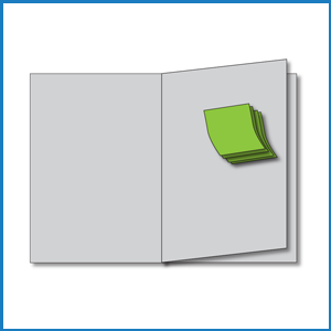 Mini bloc-notes détachable de 10 notes autocollantes avec impression individuelle. Peut être collé sur la publicité à l'intérieur ou utilisé comme aide à l'organisation dans la table des matières.
